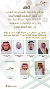 يسر غرفة الباحة الإعلان المبدئي عن أسماء المرشحين لعضوية اللجنة القطاعية العقارية للدورة الحادية عشر والذين تقدموا بطلباتهم للمساهمة في تطوير القطاع العقاري